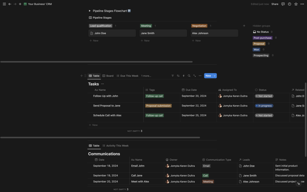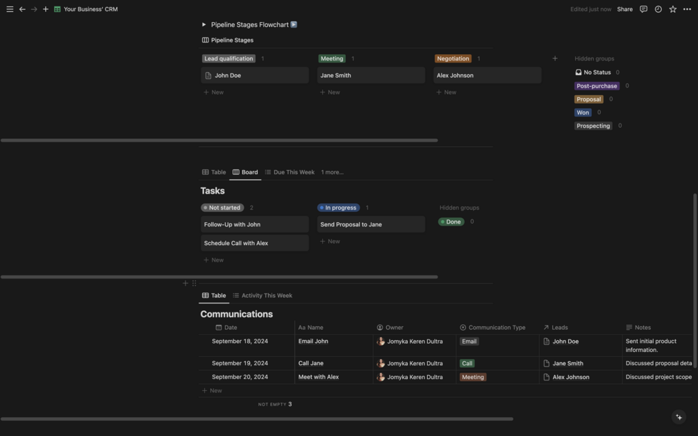 Whether you're managing a small team or working solo, this Notion CRM template will help you stay organized and drive your sales efforts forward. Start managing your leads and tasks like a pro today!